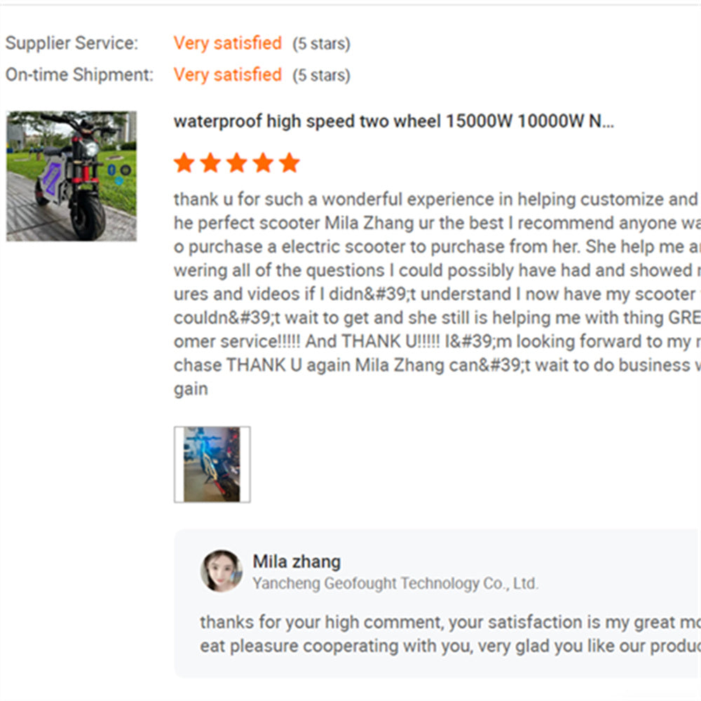 Geofought is a professional manufacturer of electric scooter with 50 emplovees, Geofought focuses on OFF ROAD SCOOTER and TWO-WHEEL Scooters, all of them with patented design. We export to over 80 countries and regions, especially North America,EU,Australia,Japan,Korea,South America,Middle East,ect. Most of clients are famous all over the world, such as Wal-Mart Amazon. We have skilled and extraordinary R&D team and will release new product every six months. As an ISO9 001 certified company and BSCI factory with CE, RoHS, FCC, and UKCA certification of our product. We are continuously work overseas partners to enhance the influence of our brand. We are looking forward to establishing long - term business relationship with all of you. lf you are interested in any products, please feel free to contact us at any time!All OEM and ODM projects are welcomed.